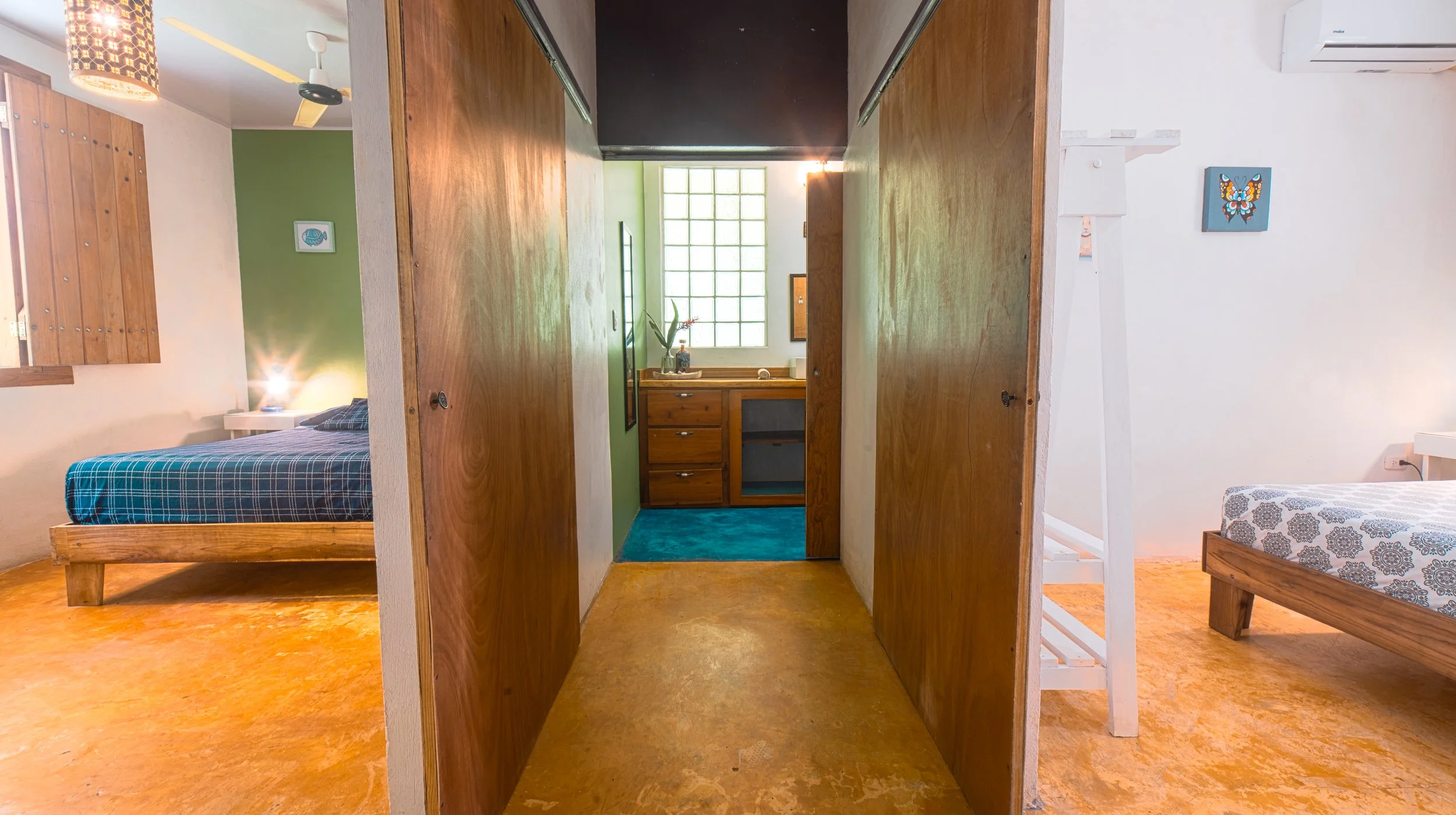 Cuenta con dos dormitorios ambas con aire acondicionado y mosquitero en las ventanas.